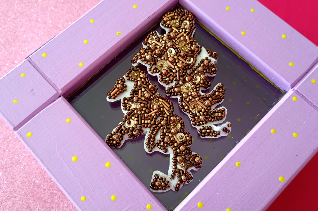 Aplique bordado a mano en pedreria, para coser (si querés puedo agregarle prendedores para hacerlo desmontable).